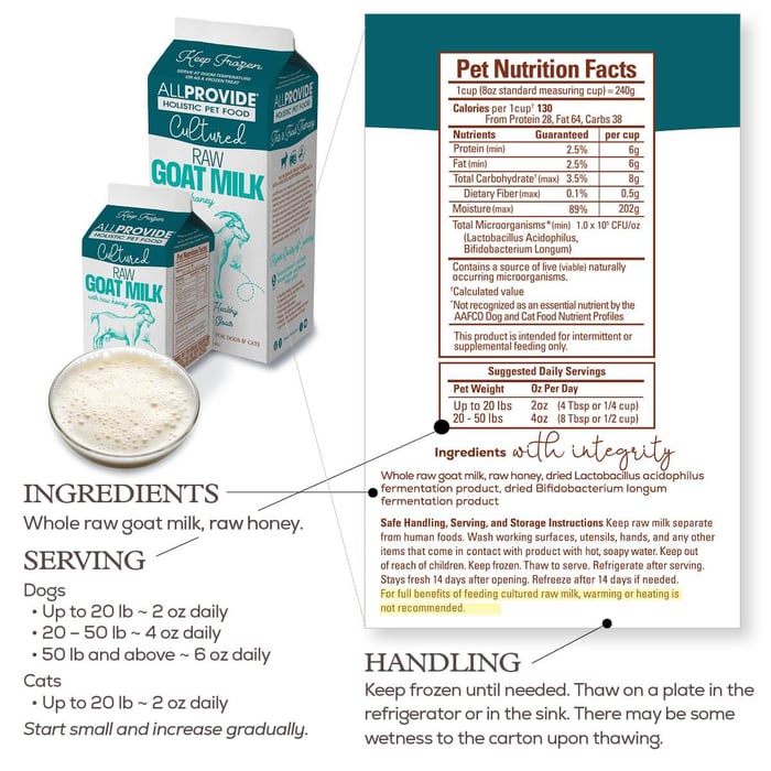 In contrast, pets thrive on Cultured Raw Goat Milk.
